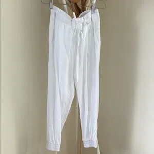 Comfortable white jogger pants with a drawstring waist. Perfect for casual wear.