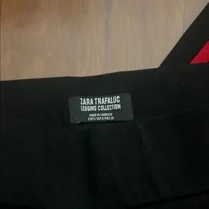 Stylish black leggings from Zara Trafaluc. Zara legging with white and red stripes on the side. The stitching at the bottom of one of the legs came undone.