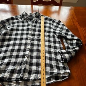 Karen Kane Black and White Check Cuffed Sleeve Button Down Shirt Size M Linen