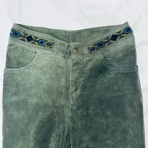 Stylish green 100% Leather flared jeans perfect for any casual outing. Comfortable and trendy, these jeans are a must-have in your wardrobe.