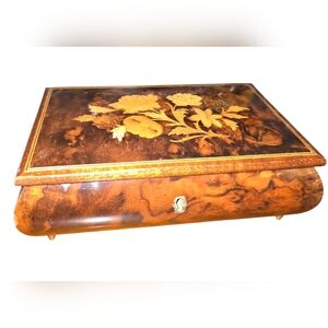 Reuge Floral Inlay Wooden Musical Jewelry Box