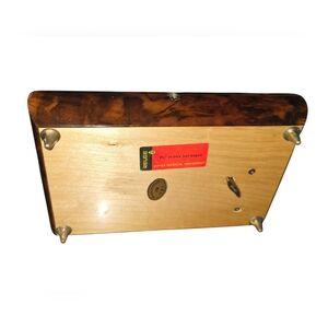 Elegant Sorrento Italy Swiss Wooden Reuge Music Box with Wooden Inlay Design. Plays "We've Only Just Begun" by The Carpenters.