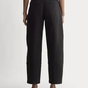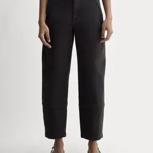 Slim fit through hips. Relaxed barrel leg. Tapered and cropped at ankle.