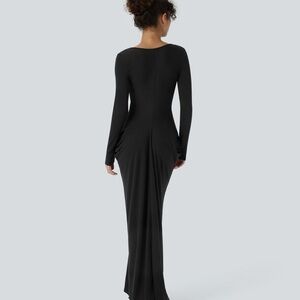 Halara Deep V Neck Long Sleeve Stacked Ruched Maxi Casual Dress