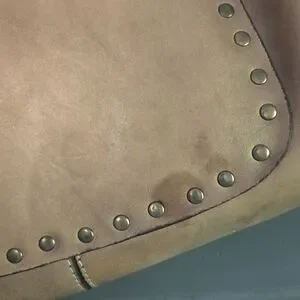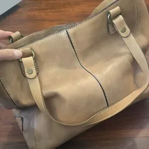 This elegant tan tote from Patricia Nash showcases a vintage-inspired design with decorative metal studs. Crafted from high-quality leather, it features a spacious interior perfect for everyday essentials. 12×10×3 inches. (stain on front pocket)