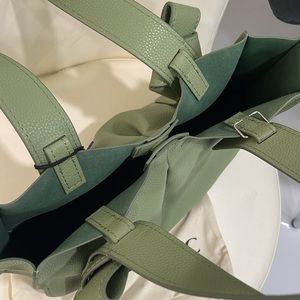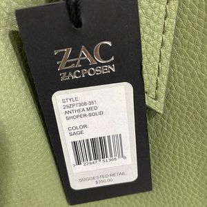 NWT Zac Posen Sage Green Anthea Medium Leather Shopper Tote Bag with Forest Green Interior & Duster Bag