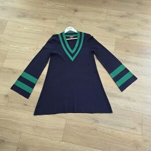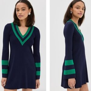 NEW Staud Sunshine Dress Size XL Blue Green Trim Knit Woven Mini Dress