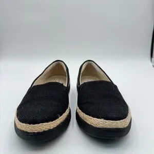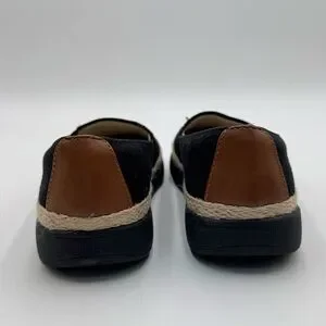 Accent combines espadrille style with a variety of different upper materials from leather to linen or textile fabrics for a unique casual slip on. A cushioned footbed with arch support is removable and the unit rubber sole is supportive and slip resistant. A soft lined upper cradles your foot in comfort.