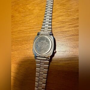 Casio, has become well-known for the sophisticated functionality and elegant design of their digital watches that launched in the 1970s. This silver-toned A158WA-1, a retro model from the ’80s, feels just as relevant today with its clean interface and smart features like LED light, alarm, calendar and stopwatch. With multifunctional capabilities and an adjustable stainless steel band, you can easily wear it every day (and never check your phone for the time again). Produced in metal. Case: 23mm Band: 8.5l x 0.39"w