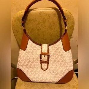 Micheal Kors Cream and Brown Leather Shoulder Bag with Monogram Design