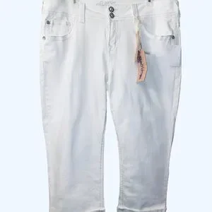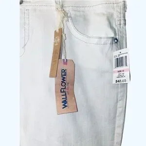 NWT Wallflower White Crop Jeans with Rhinestone Pockets - Sz 17