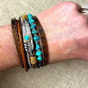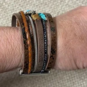 Bracelet, Turquoise& Brown, 7.5”x 1”, NIP, magnetic closure, Unisex, multi strap
