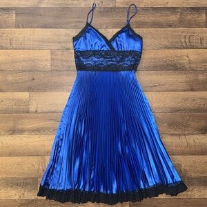 Betsey Johnson New York Size 4 Vintage Accordion Pleats Cobalt Blue Dress Y2K