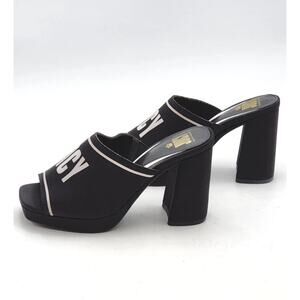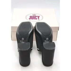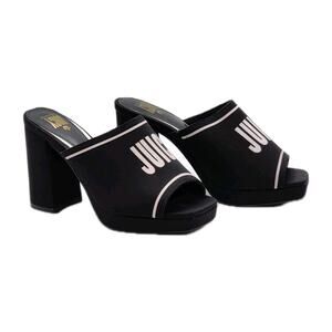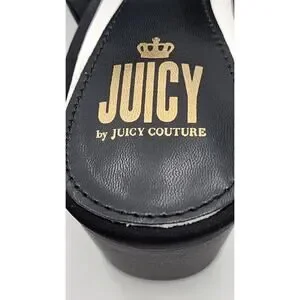 Juicy Couture Juicy Girly Womens Size 8.5 M Heeled Sandals Black White Logo