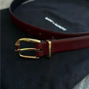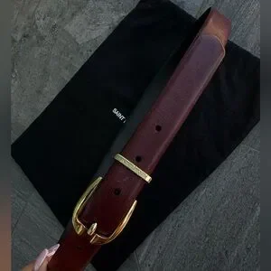 YSL Saint Laurent Burgundy Vintage Leather Belt with Gold Logo