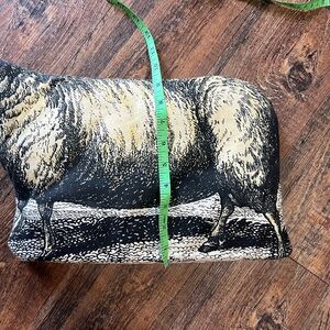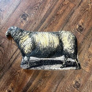 This exquisite fiber art piece showcases a stylized sheep in a classic black and cream palette. Vintage 1991 sheep plush cover. Not tears or stains in excellent condition. Looks like you can put it over a candle, tea kettle, or really just about anything it can fit over as decoration.