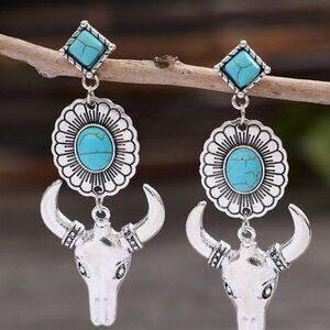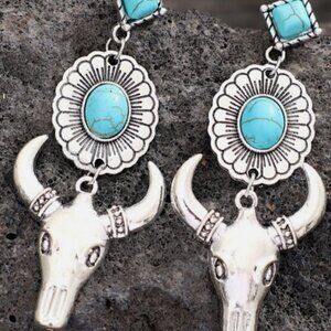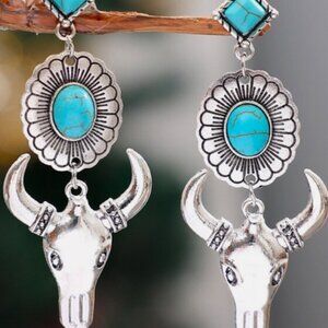 Blue and Silver Western Cowboy Turquoise Tauren Earrings Bohemian