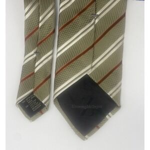 Ermenegildo Zegna Mens Green Stripes Silk/ Cotton Blend-Neck Tie-Made Italy. Condition is Pre-owned. Shipped with USPS Ground Advantage.