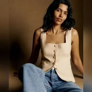 🌿Sezane Zelinda Chestnut Linen Vest NWT Size 14 FINAL