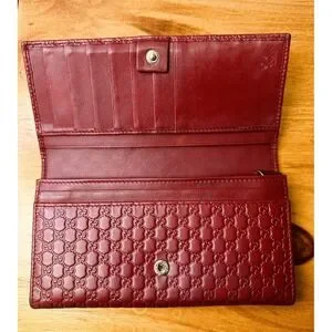 Authentic Gucci Wallet Micro Guccissima Continental Flap Leather Wallet 449396 520981 Red Long Wallet. Snap closer in good working condition. Wallet shows wear throughout. In good pre-owned condition. Interior is so soft. No box or dust bag. Please see all photos as they are part of the description & ask any questions before purchasing.