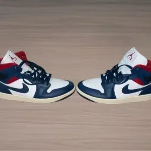 Wmns Jordans Size 10.5/Mens 9 Sneakers - French Blue, Red, and White