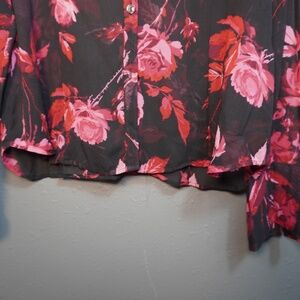 Express Women's Black Pink Red Floral Button Down Sheer Blouse Size 13/14
