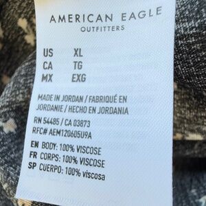 NWT American Eagle Black Ditzy Floral Print Puff Sleeve Front Tie Cropped Top XL