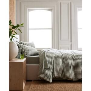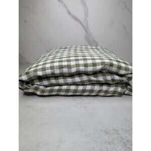 NWOT Quince European Linen Duvet Cover Full/Queen Olive Gingham