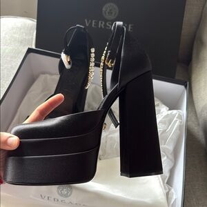 Versace Aevitas Platform Black Women's Shoes with Crystal Accents