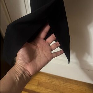 Black boot cut pants with attached skirt; silver buckle details; side zip; split at inner ankles; NWOT Tags;