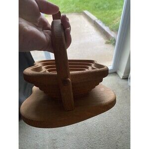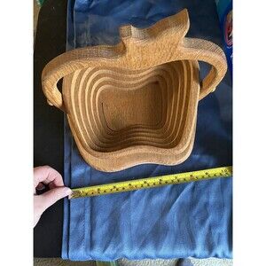 Collapsible Wood Apple Basket Bowl. In good used condition Vintage Collapsible as shown Super cool