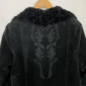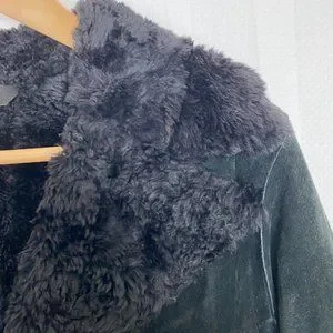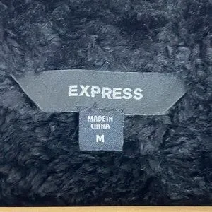 This black leather jacket from Express embodies a classic and timeless style, perfect for any occasion. Crafted with precision, it offers a sleek and sophisticated look that enhances any wardrobe. Its minimalist design ensures versatility and elegance.