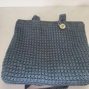 The Sak Sky Blue Crocheted Women Knit Handbag Purse Bag Double Handle