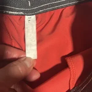 Stylish Vuori athletic shorts. Vibrant melon with white accents. Comfortable fit for active wear. Item is a small, see tag in last picture, size is not legible but item is a small.