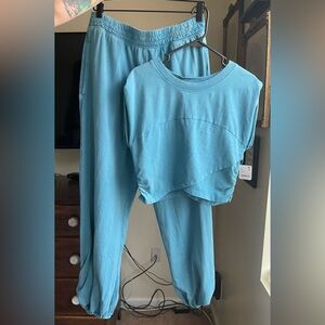 Effortlessly comfy, this set is easy to throw on before or after workouts, featuring a super soft fabrication and perfectly lived-in look.