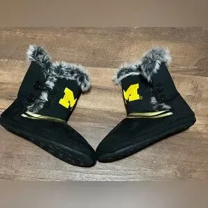 University of Michigan Wolverines black faux fur slipper booties size 9 10