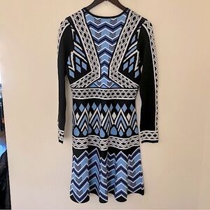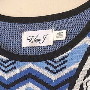 Eliza J Women’s Long Sleeve Geometric Fit and Flare Midi Sweater Dress Medium