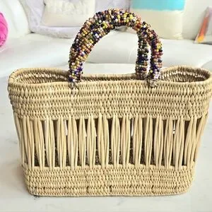 NWOT Chacha d'amour Straw Market Tote w/ Beaded Handles