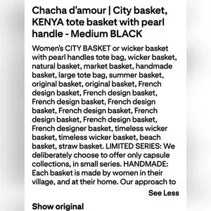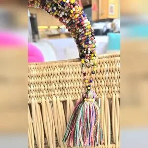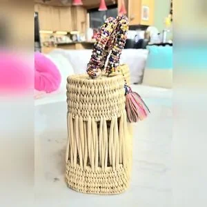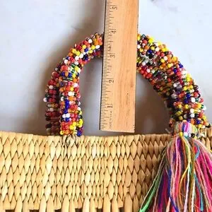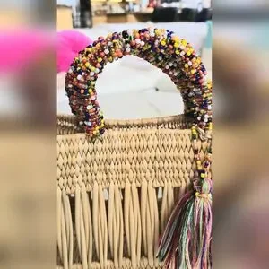 NWOT Chacha d'amour market straw wicker tote bag with double beaded handles and multi-color tassle attached with tiny beads. Made in France. Referred to as Women's city basket. Beautiful artisan workmanship. It was a gift at a luxury shop in Las Vegas from my hubby. I just never use it. Brand new.