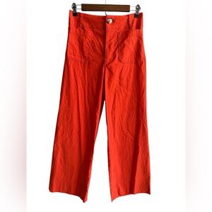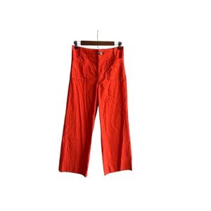 Step out in style with these Anthropologie wide leg pants in a striking orange hue. Crafted for a bold look, these pants offer a comfortable fit and a chic silhouette. Perfect for making a statement, they are a versatile addition to any wardrobe.