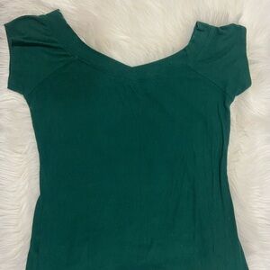 Elevate your style with this chic green ribbed top from Bebe. Perfect for any occasion, this top offers both comfort and elegance. Super soft, comfy material, almost gives an “off the shoulder” look