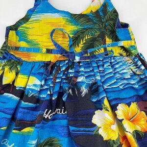 Ali'l Fashions Hawaii Girl's blue aloha tropical print Hawaiian dress sleeveless sundress.