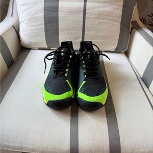 Stylish Wilson athletic shoes in black and neon green. Perfect for sports and casual wear. Worn just around for an hour. Like new.