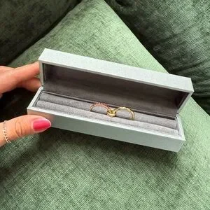 18k solid gold bands, ruby gemstones. brand new never worn. comes with original box! size 7