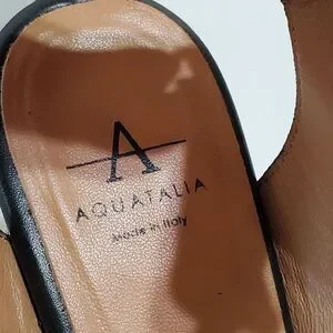 Aquatalia Womens Leather Sandals Sz 6.5M Samara Perforated Block Heel Black