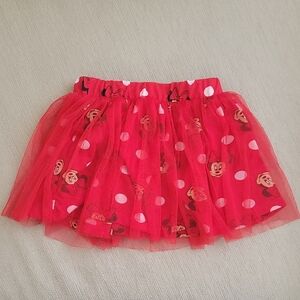 Adorable red tulle skirt featuring a playful cartoon print and polka dots. Perfect for adding a fun touch to any outfit.