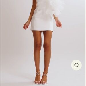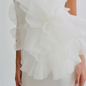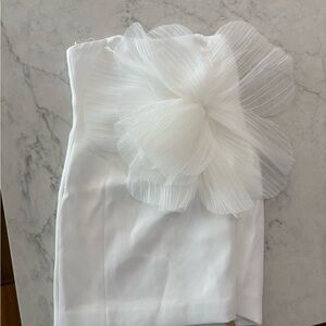 This elegant white strapless dress features a stunning ruffle design, perfect for any special occasion. Its classic white color adds a touch of sophistication to your wardrobe.