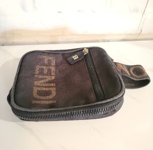 This Fendi travel bag combines luxury with practicality, featuring a sleek black and brown color scheme and the iconic Fendi logo. Its compact design makes it perfect for on-the-go, while the durable material ensures lasting style. Sold as is no returns