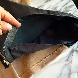 This elegant sheath dress by 3.1 Phillip Lim features a striking asymmetrical wrap design. The sleeveless tan top is complemented by a bold black skirt, perfect for a sophisticated night out. Its crew neck and knee-length cut add a touch of modern elegance. NWT! Please see pictures for measurements of this garment.