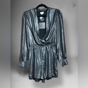 NWT Le Lis Metallic Silver Jumpsuit Sz S